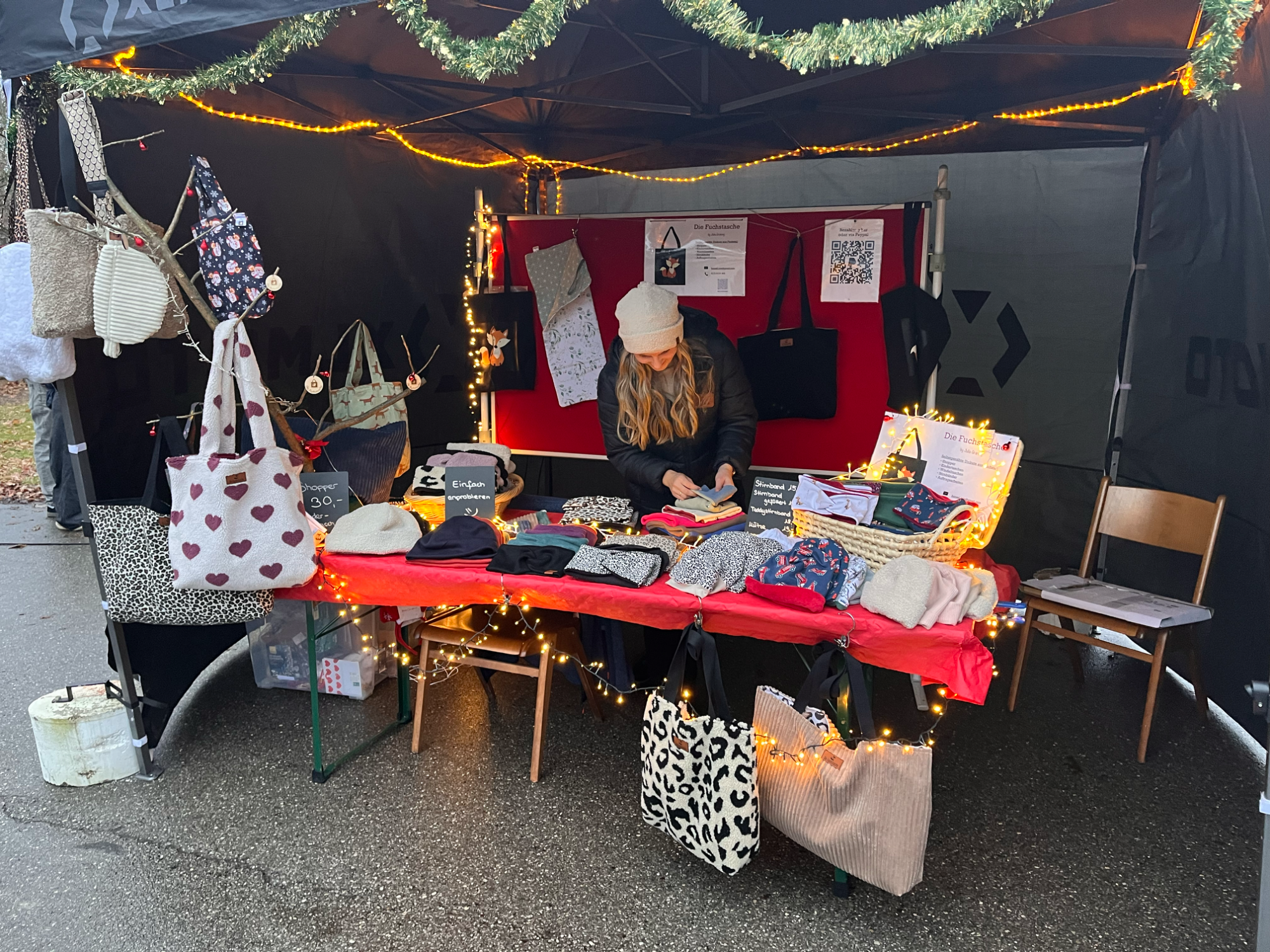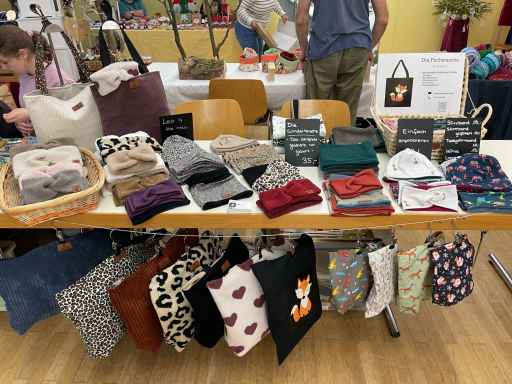 Während meiner Elternzeit habe ich mich im April 2024 dazu entschieden Die Fuchstasche zu gründen :). Seitdem bin ich auf verschiedenen Märkten unterwegs und habe das Sortiment durch eure individuellen Kundenaufträge nach und nach ausgebaut :)